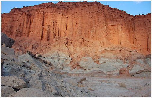 medio del barranco se alza la radical verticalidad de las torres de la